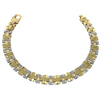 14k Yellow And White Gold Railroad Link Mens Bracelet, 8.25"