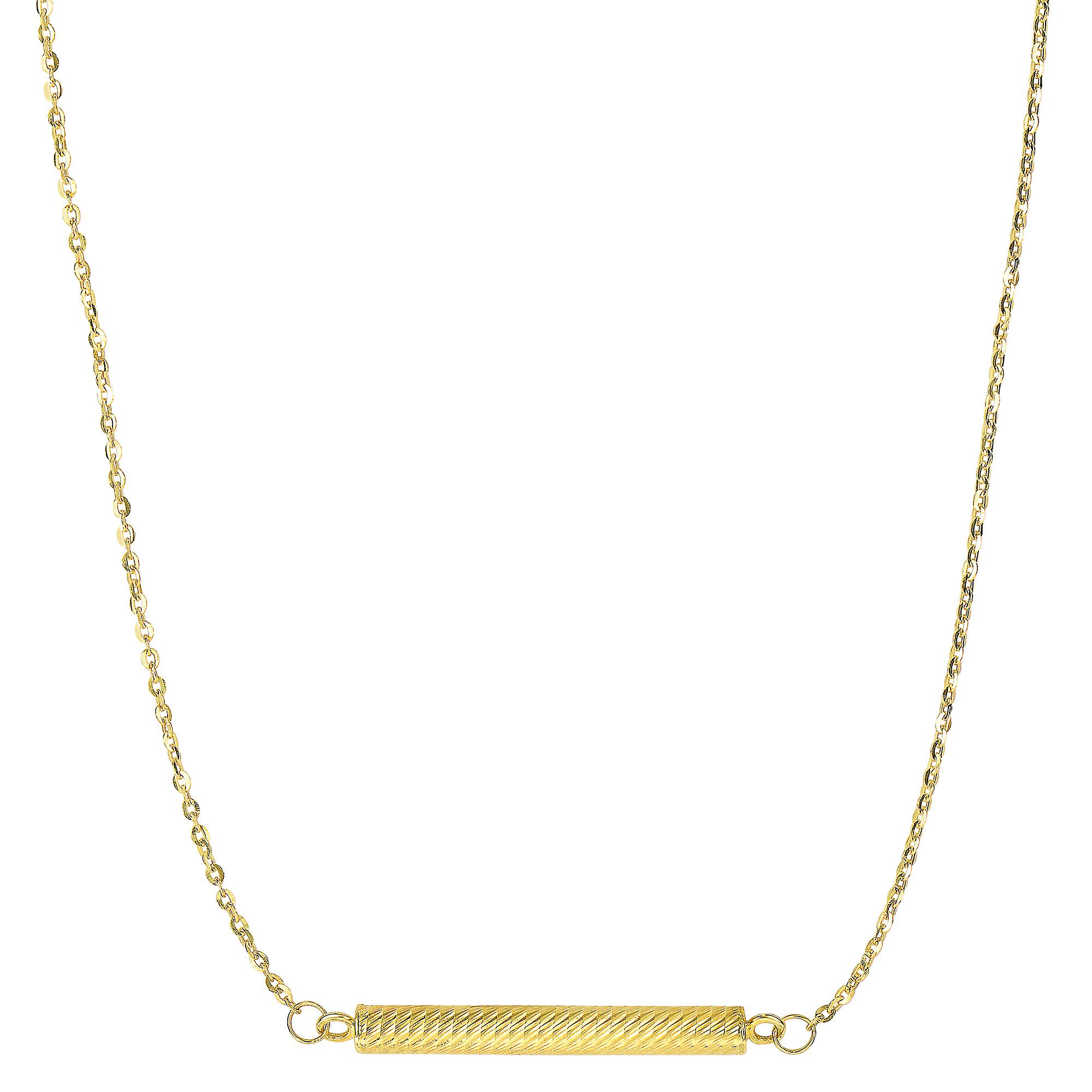 14k Yellow Gold Cylinder Bar Sideways Pendant Necklace, 18"