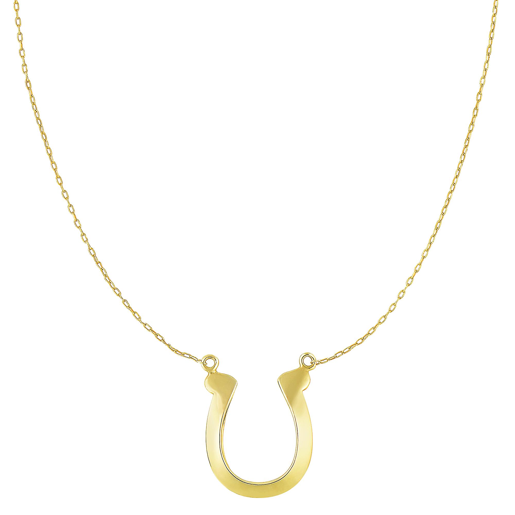 14k Yellow Gold Shiny Lucky Horse Shoe Pendant Necklace, 18"