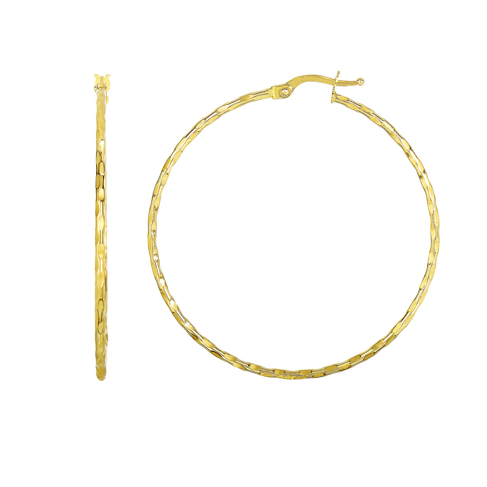 14K Yellow Gold Shiny Round Hoop Earrings, Diameter 45mm
