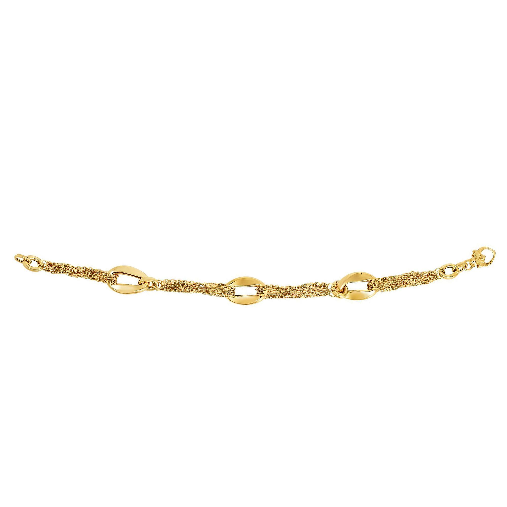 14k Yellow Gold Three Curved Oval Link Multi Stranded Cable Chain Bracelet, 7.5"