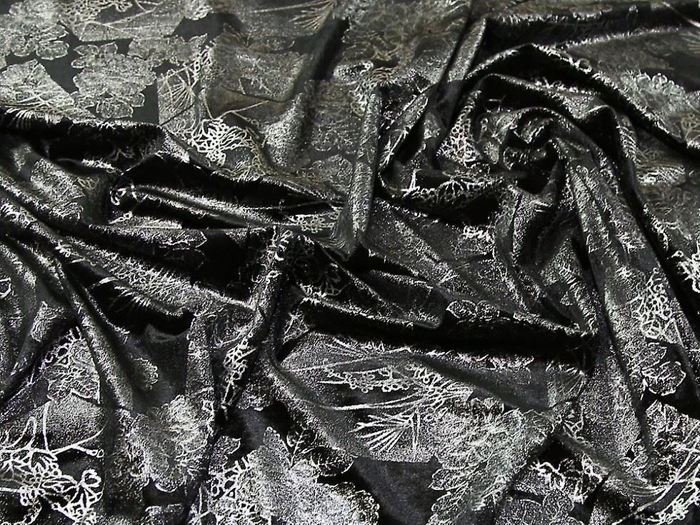 1.5m Velvet Stretch Knit Fabric Silver on Black - per metre