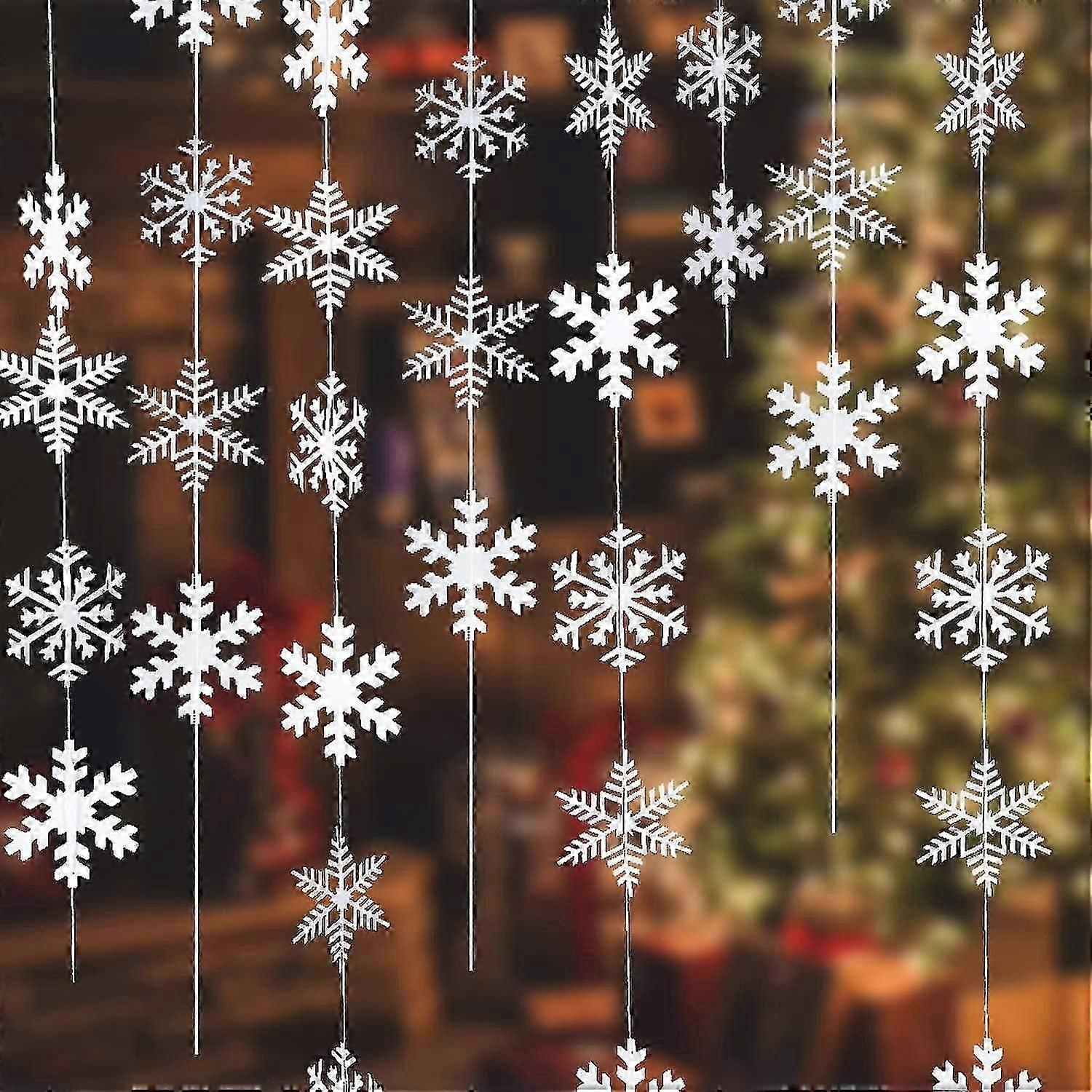 DIY project: 16 x 1.9 meter snowflake hanging decoration. Each wreath has 6 snowflakes. Beautiful winter snowflake chain: snowflakes are made of pearl paper and strung with white lines.Each 5.5 inch snowflake , each wreath has 6 snowflakes and 3 styles. Easy to use: no tangle Each garland has its own packaging and assembly, easy to hang. The snowflakes can move on the rope and adjust the spacing at will. The perfect Christmas decorations: hang it from the ceiling or along the wall to create great backgrounds, or Easily stick them on doors, windows, furniture, etc., it will be beautiful. Great goal: Use these hanging swirls to decorate your home, office, Christmas, holidays, parties and other schools. Create a cheerful atmosphere for your office Christmas party and enhance the party atmosphere. Very suitable for winter decoration: Exquisite decorations for winter birthdays and baby shower, window decorations, frozen party decorations, winter party decorations and white Christmas party decorations. Features: There are three different types of snowflakes on a rope, 16 ropes 1.9 m long each. The snowflake is removable. You can decide the length between the snowflakes. There is no knot. Each drill bit is individually packaged and assembled upon delivery. Easy to hang or use as a background. Garland: Each garland has 6 snowflakes and 3 different styles Wreath: The crown is approx. 1.9 m long Delivery quantity: 16 pieces.