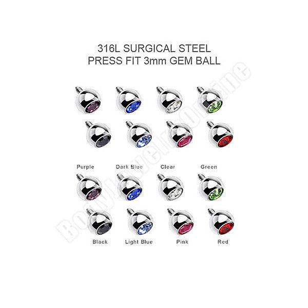 16 Surgical steel press fit 3mm gem ball dermal anchor tops