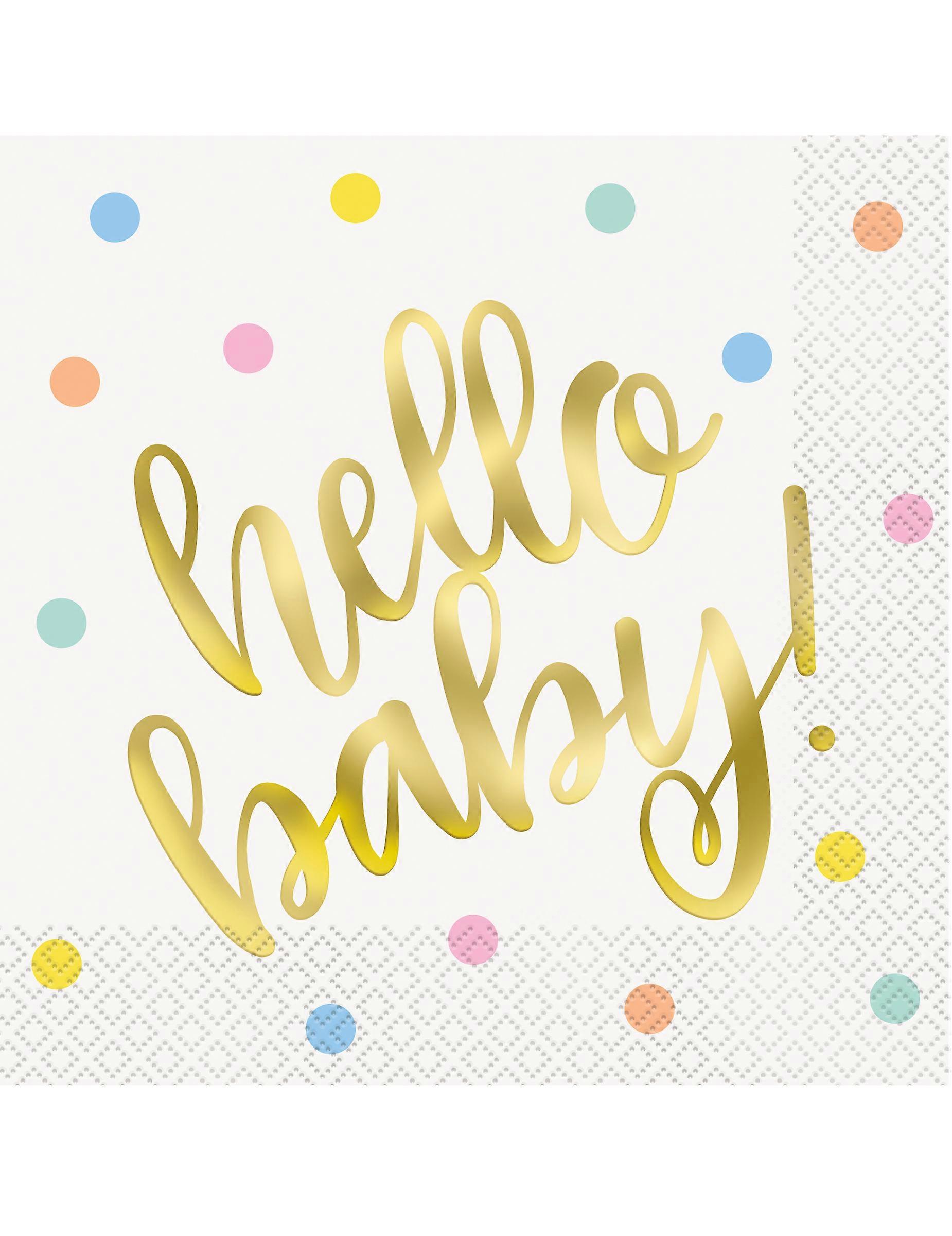 16 Serviettes en papier hello baby blanches et or 33 x 33 cm