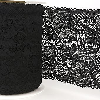 16.7cm Stephanoise Stretch Lace Trim Black - per metre