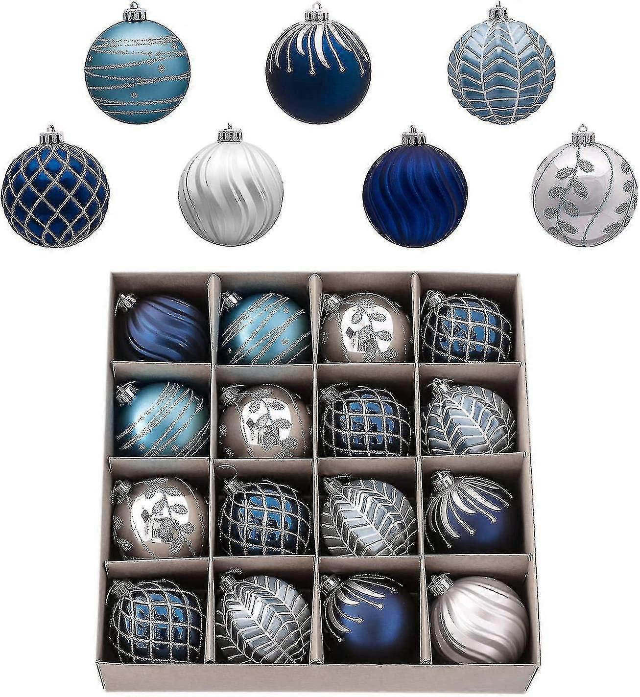 16pcs 8cm Shatterproof Christmas Baubles, Winter Wishes Silver And Blue Christmas Ball Ornaments For Christmas Tree Decoration-hao