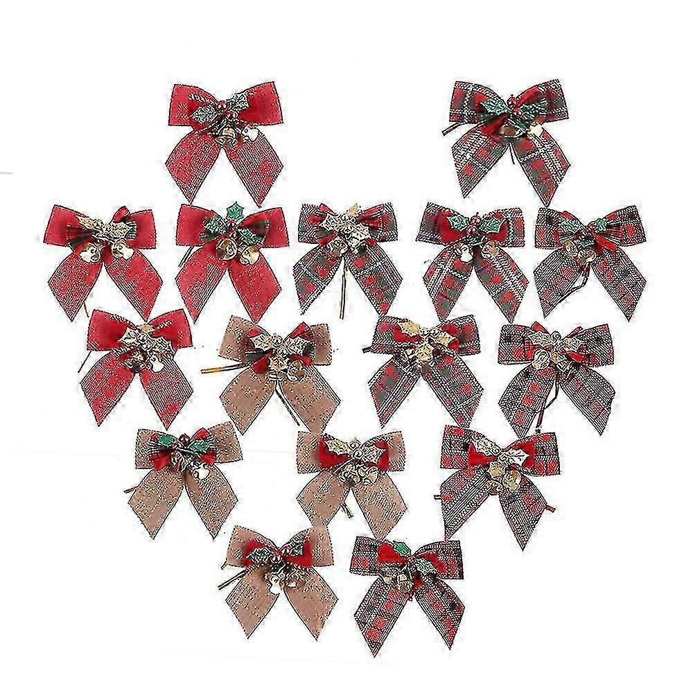 16pcs Christmas Bow Decorations, Red Sequin Wreaths Bows, Small Christmas Tree Topper Glitte