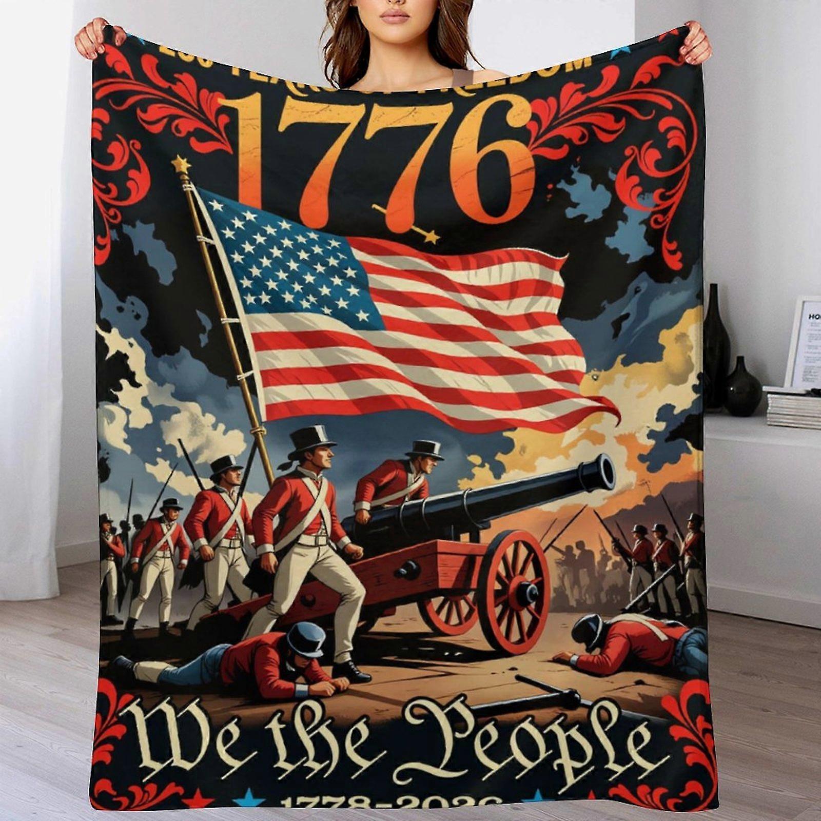 1776 "We the People" Patriotic Graphic Print Flannel Blanket - Soft Warm Throw, 50x60 Inch, USA Theme Decor for Patriotic Fans (Bed/Couch)