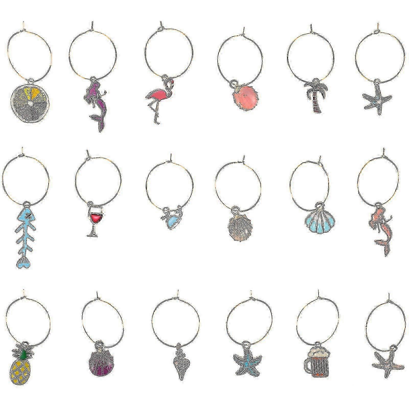 18 Pcs Beach Gifts Wedding Wine Charm Drinking Glass Identifiers Animal Glass Marker Glass Shell Charms Tropical Glass Charms-Good