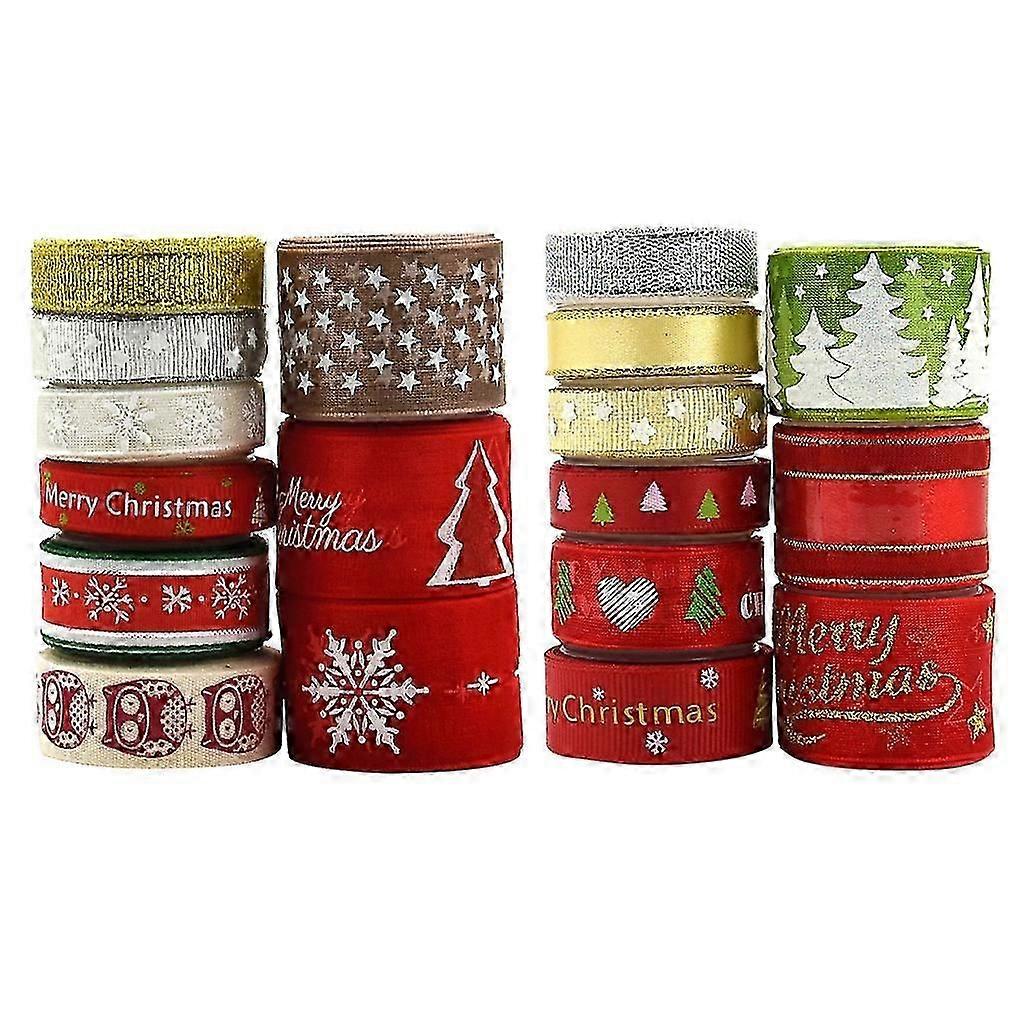 18 Rolls Christmas Grosgrain Ribbon Sheer Glitter Ribbon Hair Bow DIY Craft