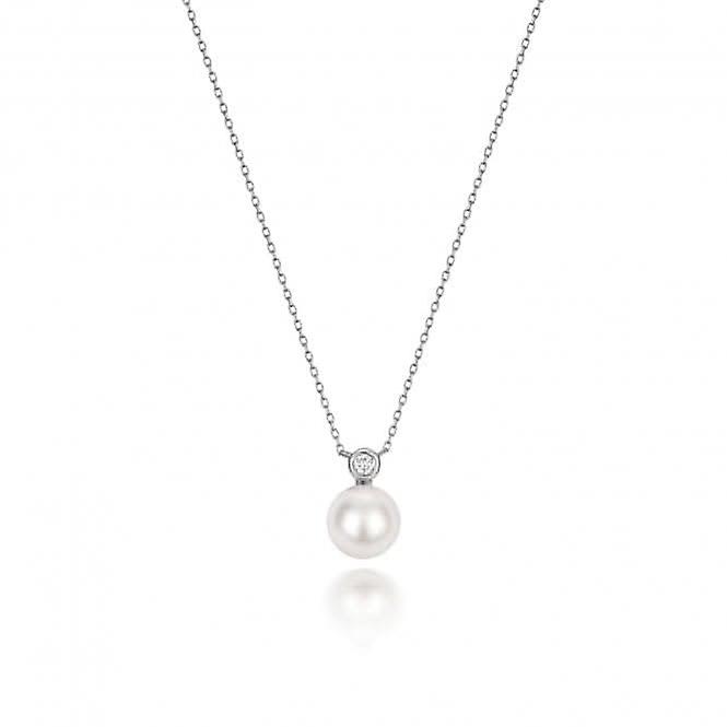 18ct White Gold Diamond & Akoya Pearl Necklace NDQ207W