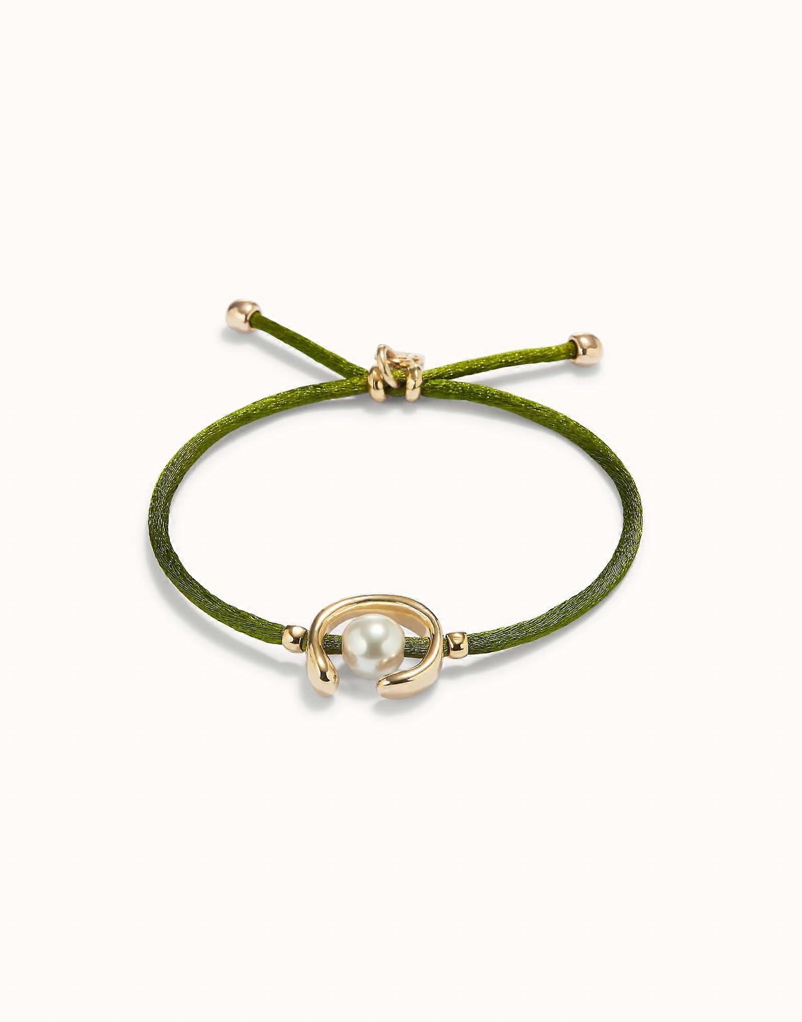 18k Gold Plated Ser Diferente Dark Green Bracelet PUL2505VDOORO0M 18ct gold-plated dark green mouse tail thread bracelet with shell pearl accessory. Made in Spain with a 100% handmade process. When it comes to bracelets, more is more