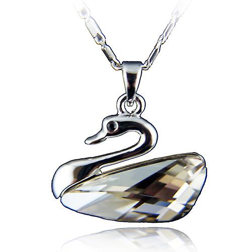 18K White Gold Plated Swan Diamond Simulant Crystal Pendant Necklace