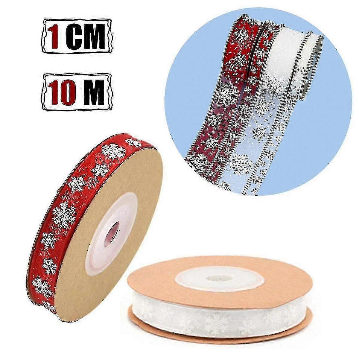 1cm10m(red+white) Christmas Decoration Transparent Snowflake Ribbon