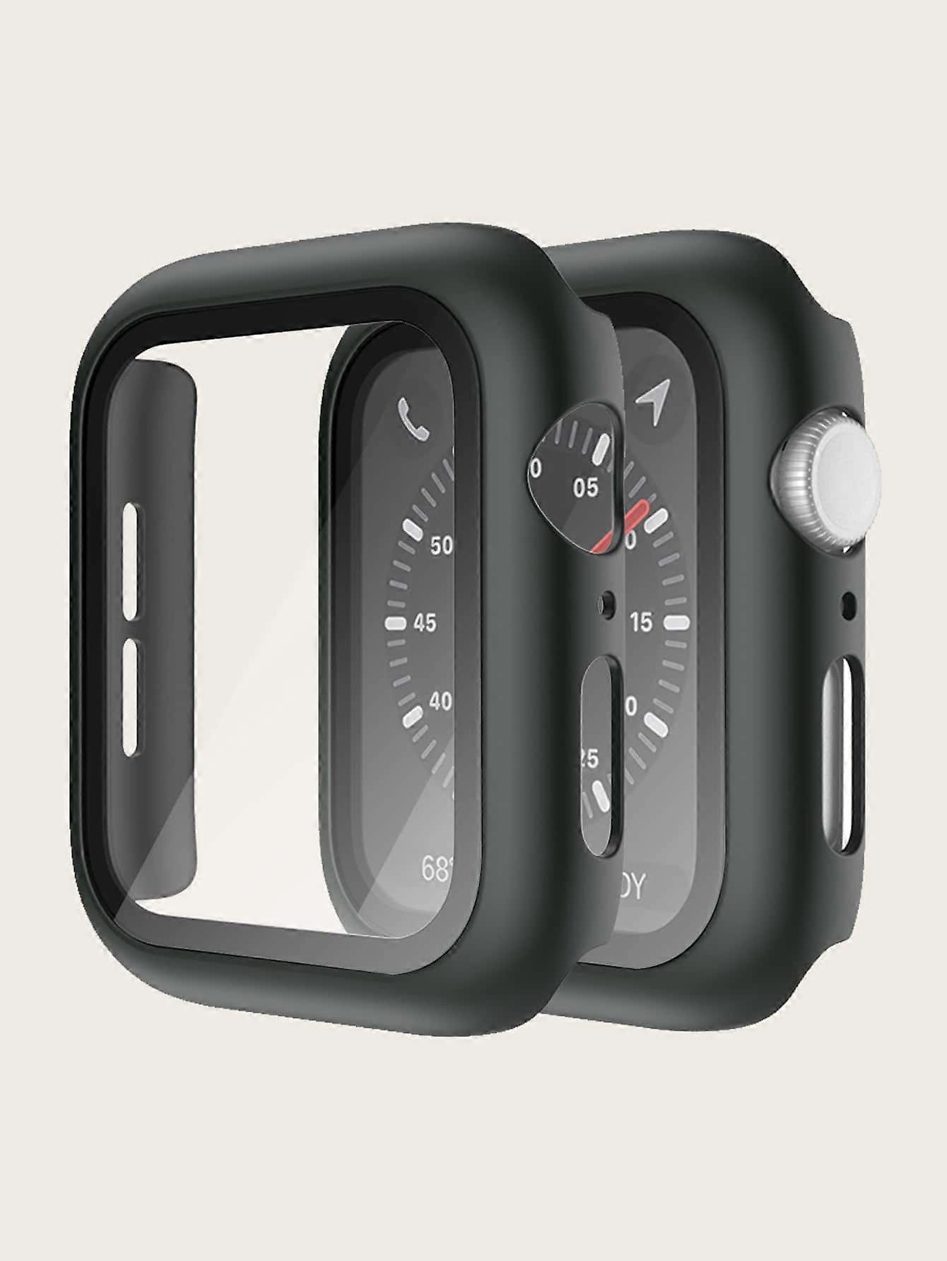 1pc Apple Watch PC Protective Case With Tempered Glass Screen Protector, Fits 38mm, 40mm, 41mm, 42mm, 44mm, 45mm, 46mm, Plastic Case Compatible With A