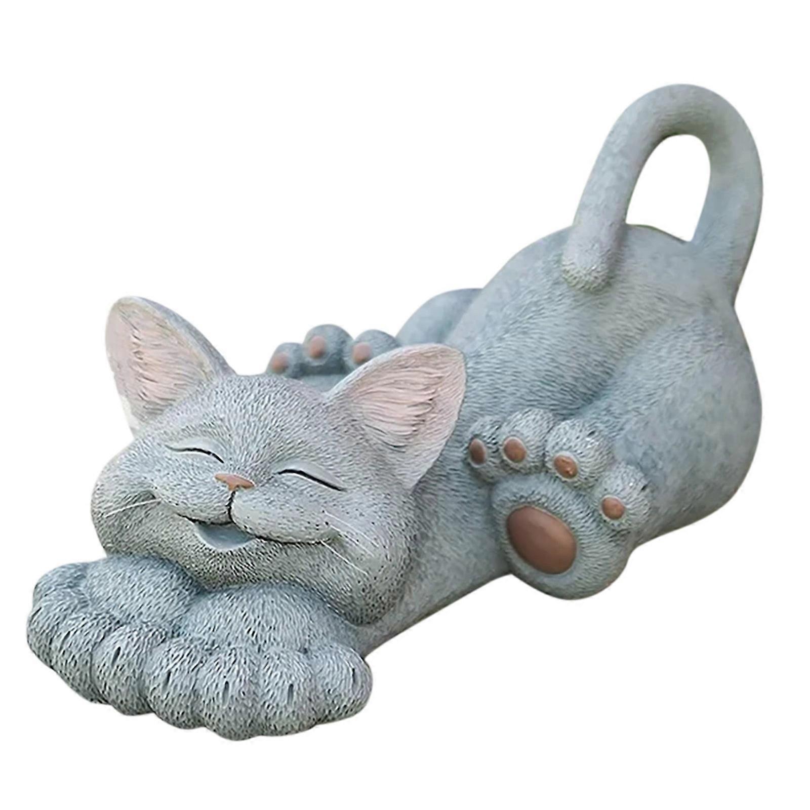 1PC Cute Stretched Cat Sculpture Lawn Gnome Figurine Desktop Sculpture Happy Statue Home Garden Yard Home Decor Ornaments
