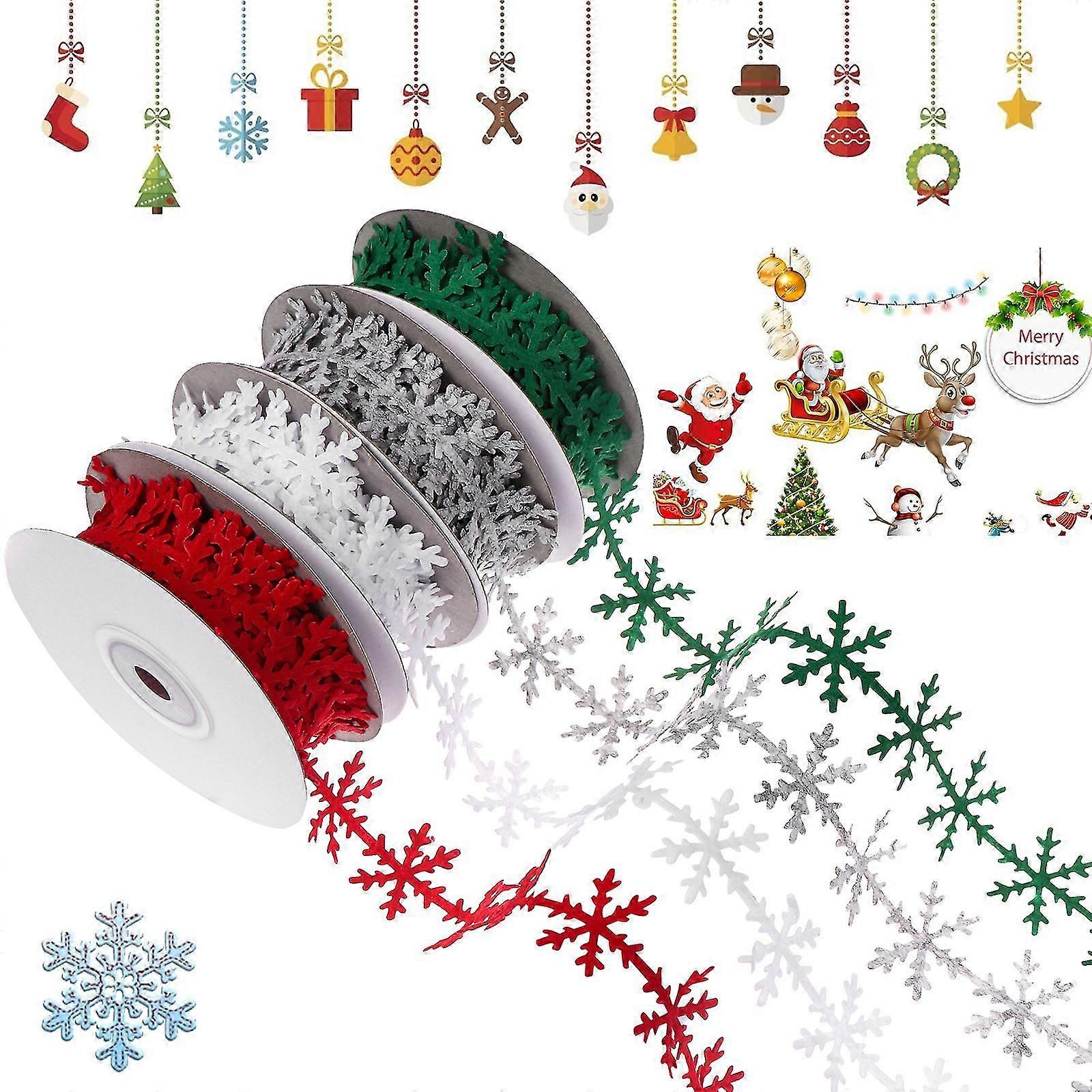 PACKAGE INCLUDES: You will receive 1 pack snowflake ribbon.PREMIUM MATERIAL: Made of polyester, eco-friendly, soft fabric.SIZE: 5 yards x 0.98 inch (5 meters x 0.25 cm). Color: White and Red and Green.WIDE APPLICATION: Soft to the touch, perfect for sewing, decorating, hair bow making vintage sewing, card, paper crafts, decorating gift baskets.MULTIPRUPOSE-USAGE: High quality silver snowflake ribbons is the perfect choice for wedding, Christmas, Halloween, birthday, holiday party decorations.