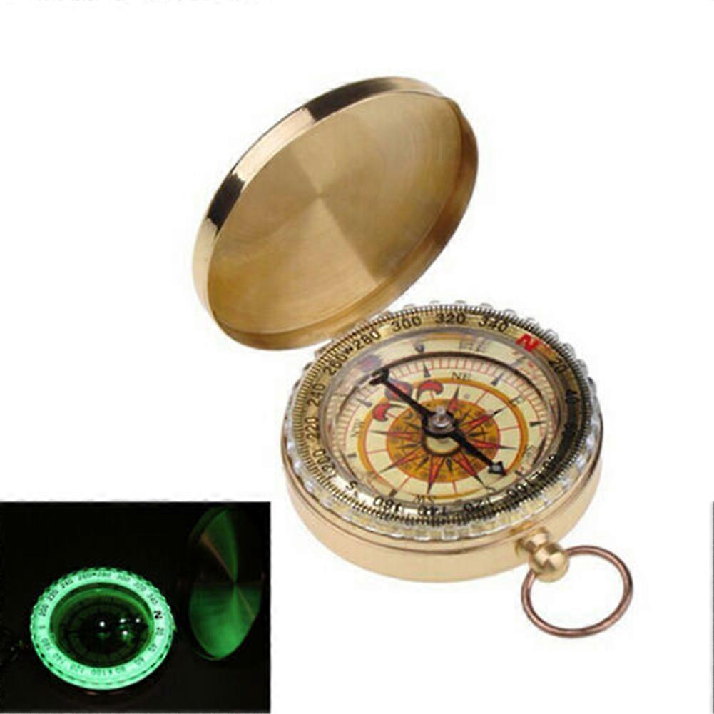 1Pcs Camping Hiking Pocket Brass Gold Compass Portable Noctilucent Vintage Flip Compass Navigation for Outdoor Activities