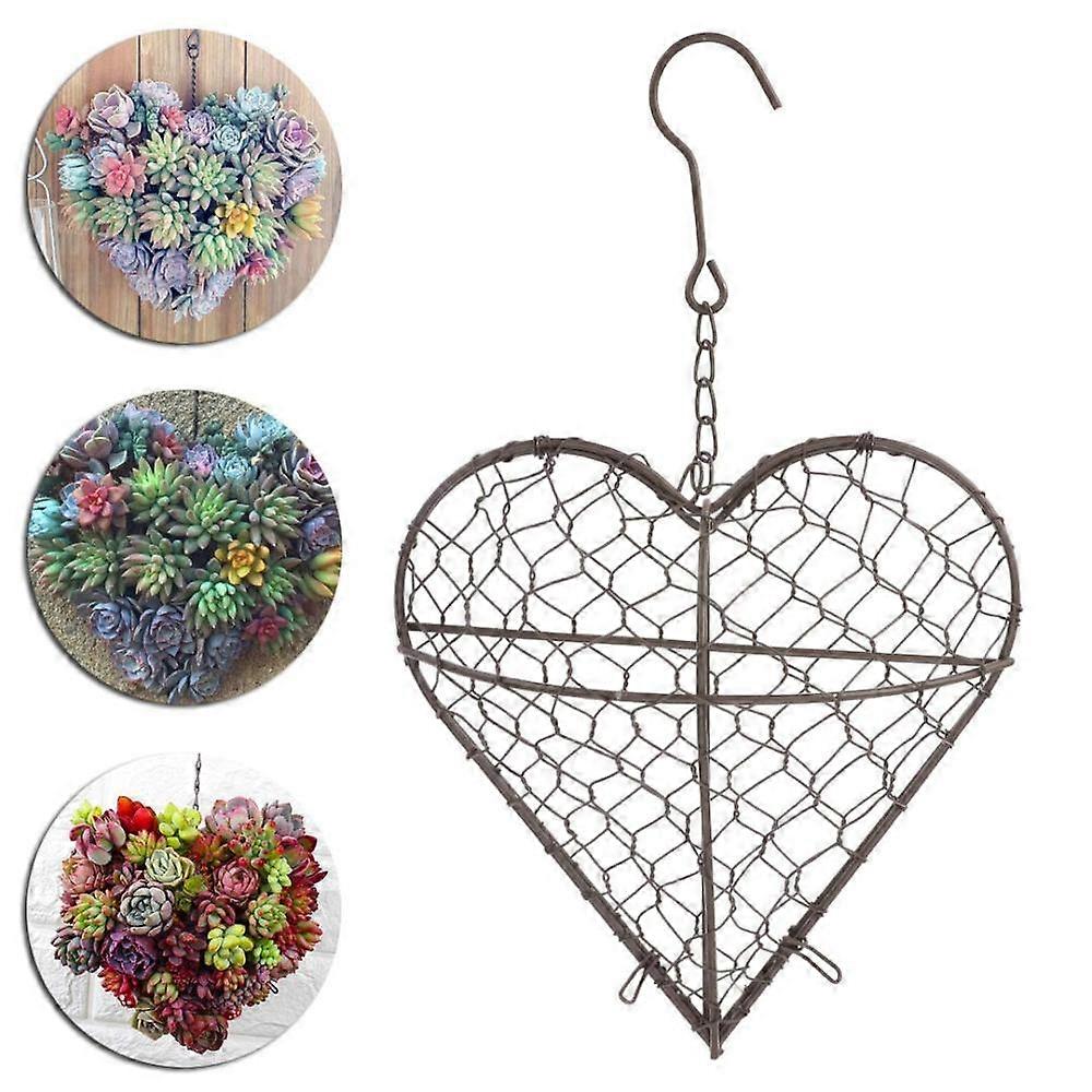 1Pcs Heart Shape Iron Wire Wreath Hanging Metal Frame Home Cafe Plant Succulent Flower Basket Holder Pot Garden Decor