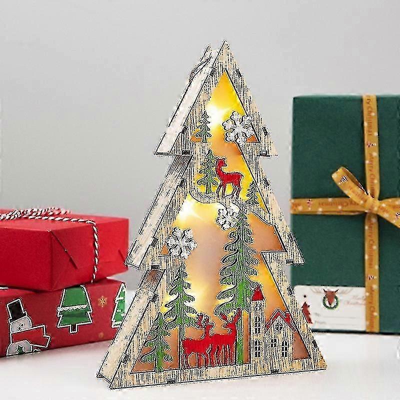 1PCS Wooden Christmas Table Lamp for Christmas, Christmas Decorations Wooden Lighted Christmas Tree