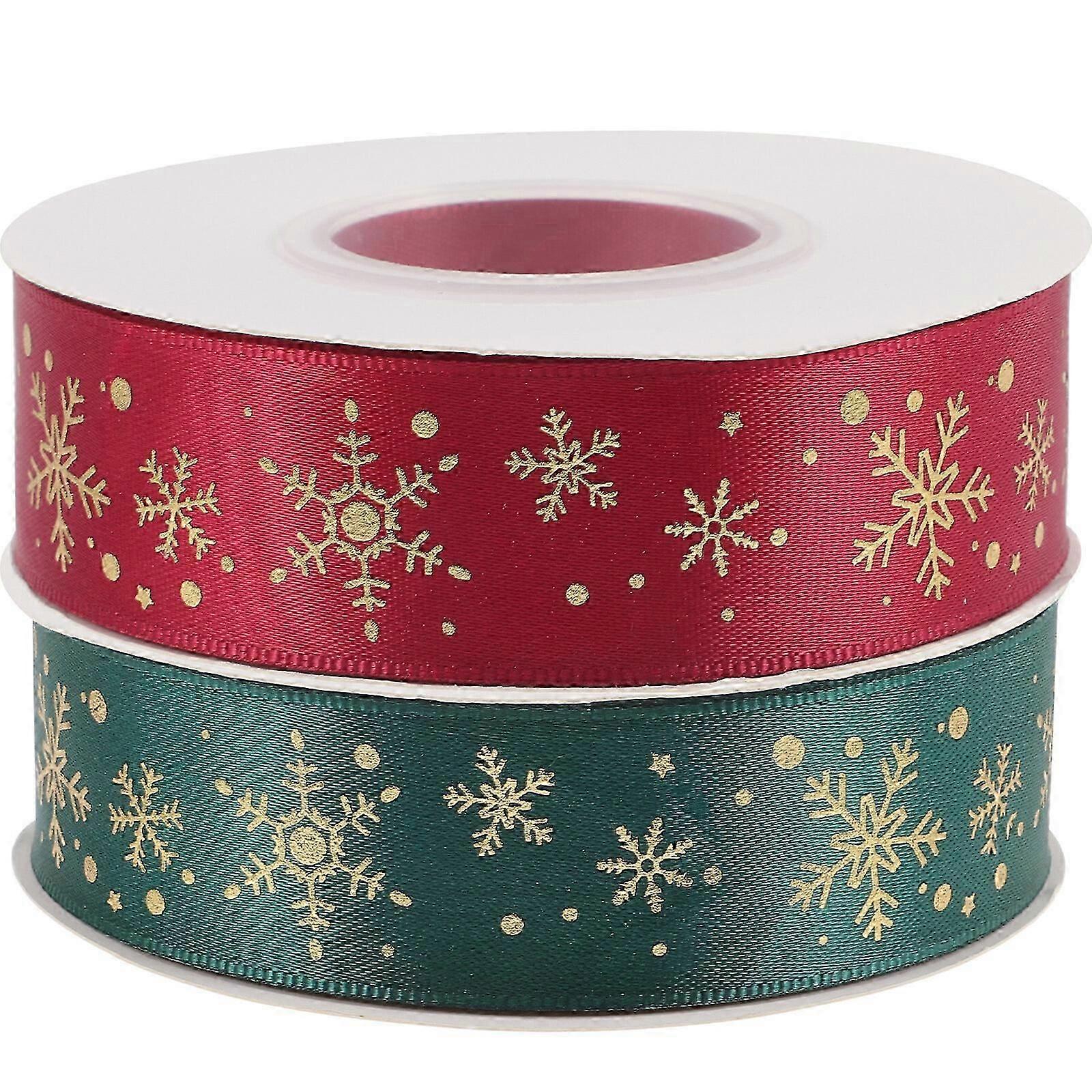 2 Rolls of Christmas Ribbons Decorative Xmas Elements Ribbons Gift Box Wrapping Xmas Ribbons