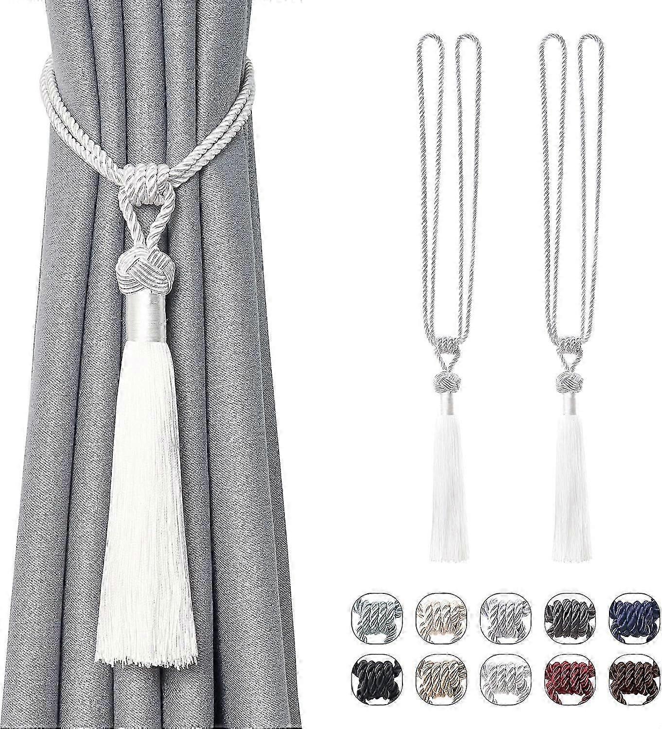 2 Pack Long Tassel Curtain TiebacksEuropean Style Decorative Curtain Holdbacks for Home & Office Window Drapery (White)