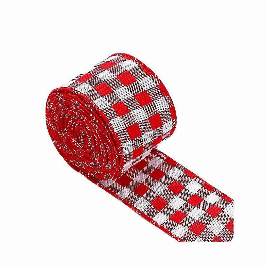 2 Christmas red and white plaid ribbon DIY packaging gift making bow Christmas scene decoration supplies Christmas ribbon A