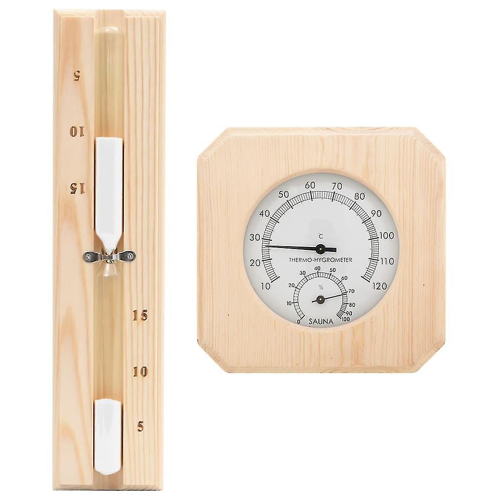 2-in-1 Sauna-Hygrothermograph und Sanduhr Set Massivholz Kiefer