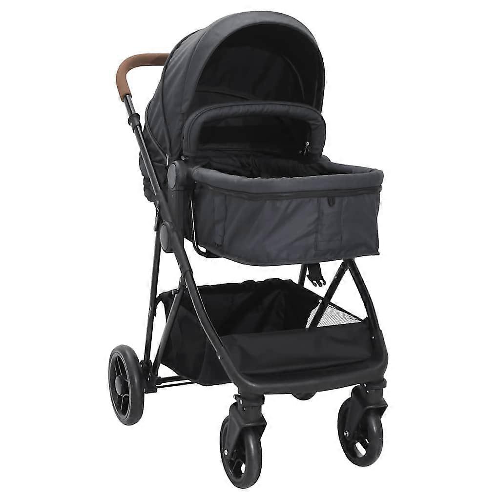 2-in-1 Kinderwagen Anthrazit und Schwarz Stahl