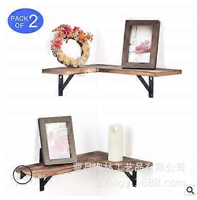 2 Pack Corner Wall Shelves Rustic Wooden Corner Floating Shelves for Bedroom Living Room Bathroom Kitchenette Corner Corner