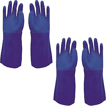 2 Pair Safetyware Double Coated Anti Chemical Acid Long Work Gloves Industrial Pvc Blue For Cleaning Oil Dishwashing Kitchen Mechanic General Purpose