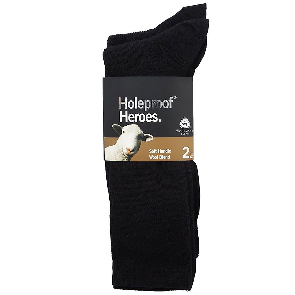 2 Pairs Holeproof Men Merino Wool Blend Rib Business Crew Everyday Socks Black S10012