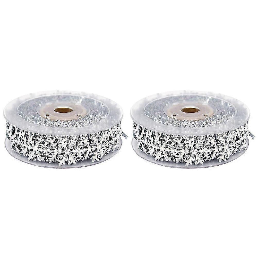 2 Pcs Chrismas Gifts Christmas Snowflake Ribbon Glittered Snowflake Wired Ribbon Snowflake Trim Sewing Home Decoration Ribbon