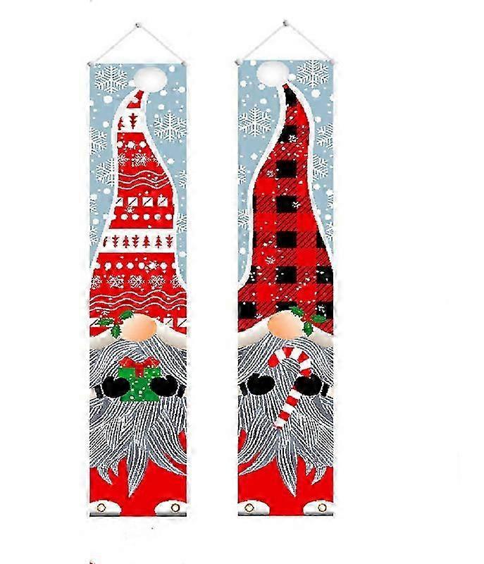 2 Pcs Christmas Porch Decoration Xmas Gnome Porch Signs Welcome Banners Winter Holiday Door Decoration for Christmas Party Decor Supplies