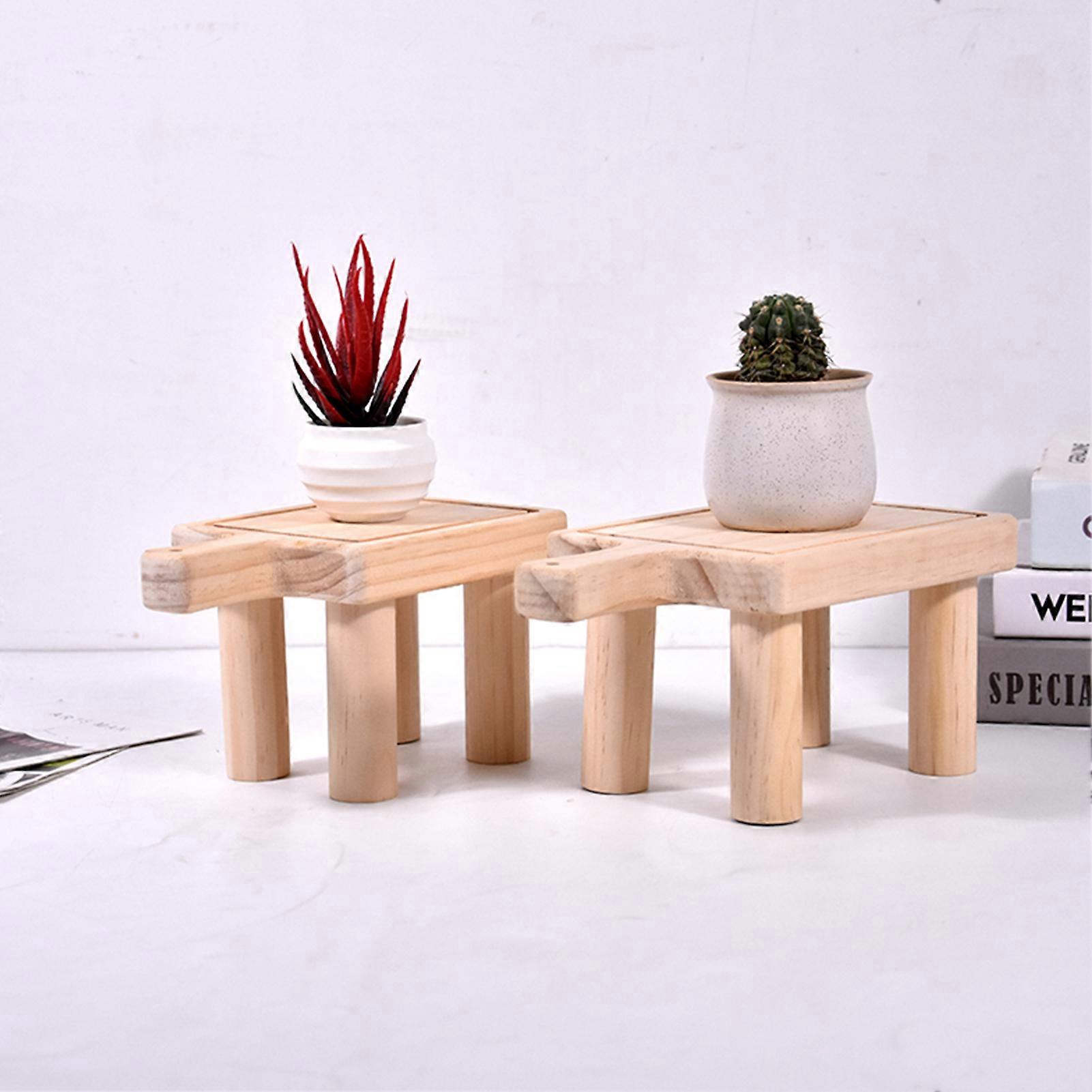 2 pcs. Flower Pot Stand Plant Stool Square Wooden Plant Trays Flower Pots Bonsai Stand for Home Garden Decoration