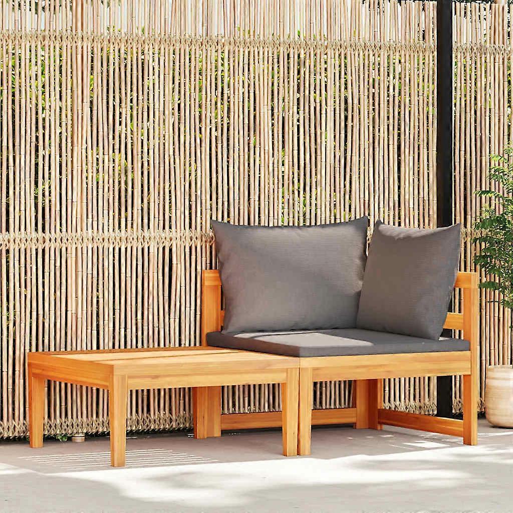 2-tlg. Garten-Lounge-Set mit Dunkelgrauen Kissen Akazienholz