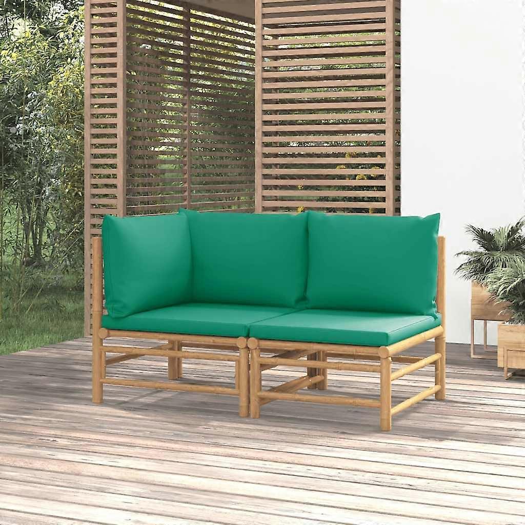 2-tlg. Garten-Lounge-Set mit Grünen Kissen Bambus