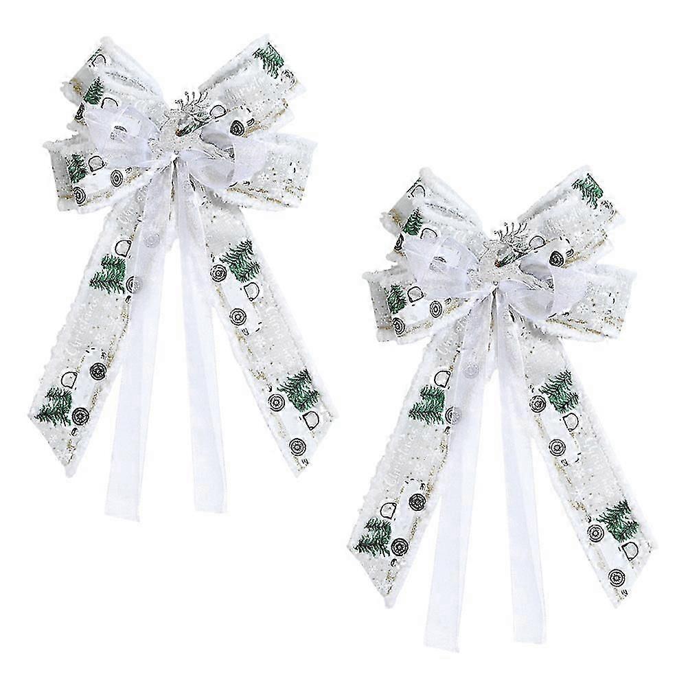 2 Pcs Large Christmas Tree Bows, Fabric Xmas Ribbon Decorations, Reusable Soft Texture Holiday Ornaments for DIY Xmas Party Accents