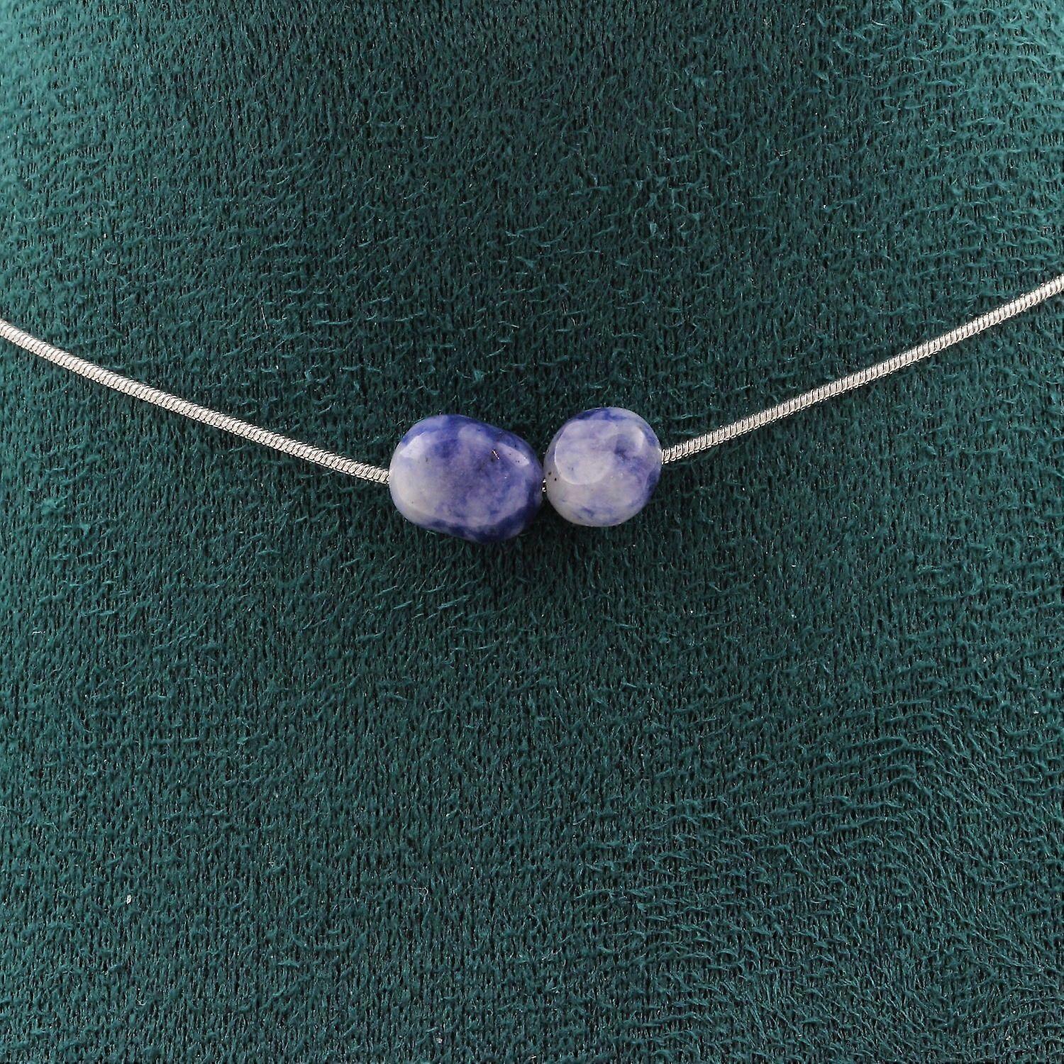 Necklace with 2 blue jasper beads from South Africa, stainless steel chain, length 45 cm. Made in France in the A Bijoux workshop. Delivered in a box pouch. Necklace for women, men, children. Ref. : SKU055000_2. Jewelry worn around the neck, often made of precious metals or adorned with precious and semi-precious stones.