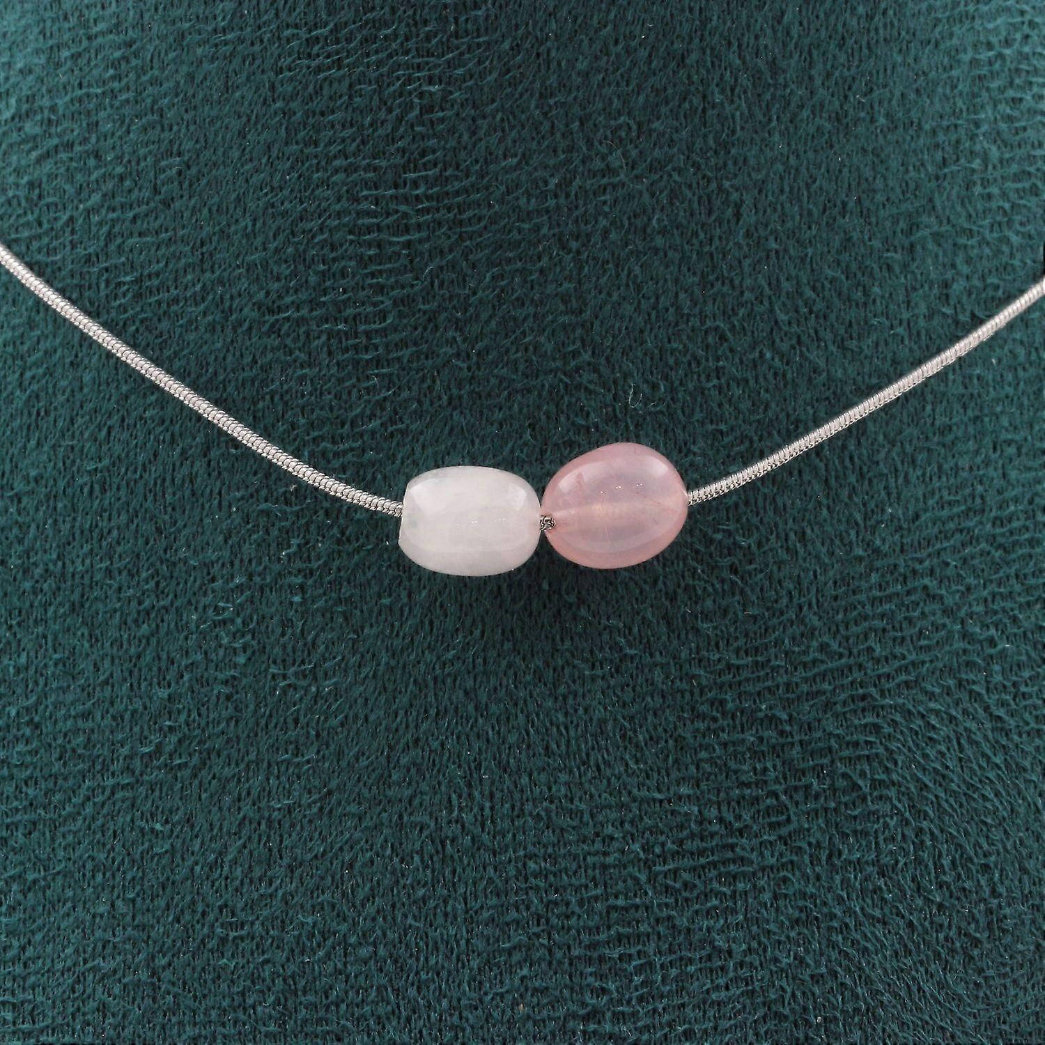 2 pearl necklace Pink quartz from Brazil Stainless steel chain