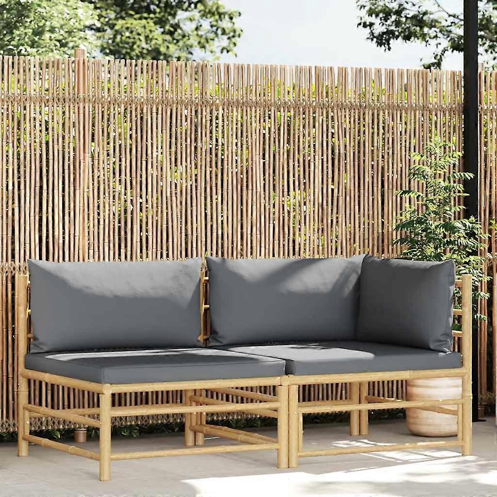 2-tlg. Garten-Lounge-Set mit Kissen Dunkelgrau Bambus