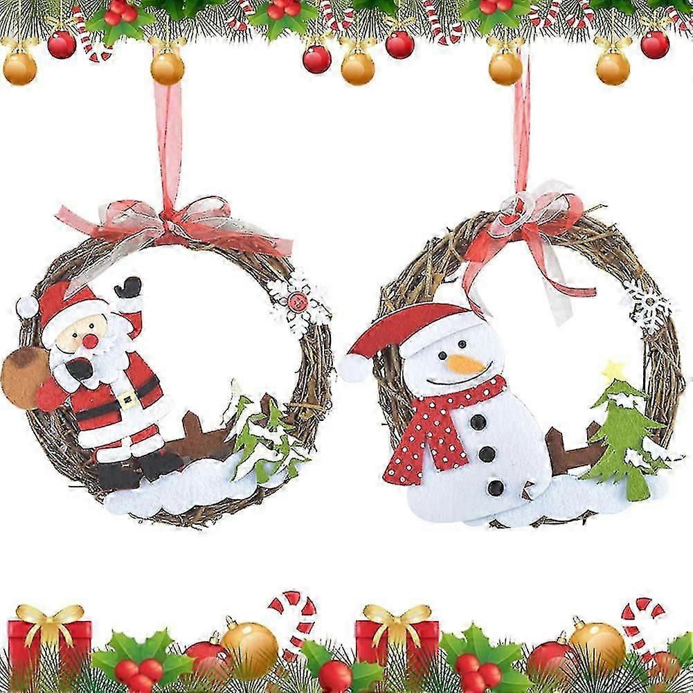 2 pieces Christmas Decoration Rattan Wreath, Christmas Rattan Pendant Door Hanging - ya01