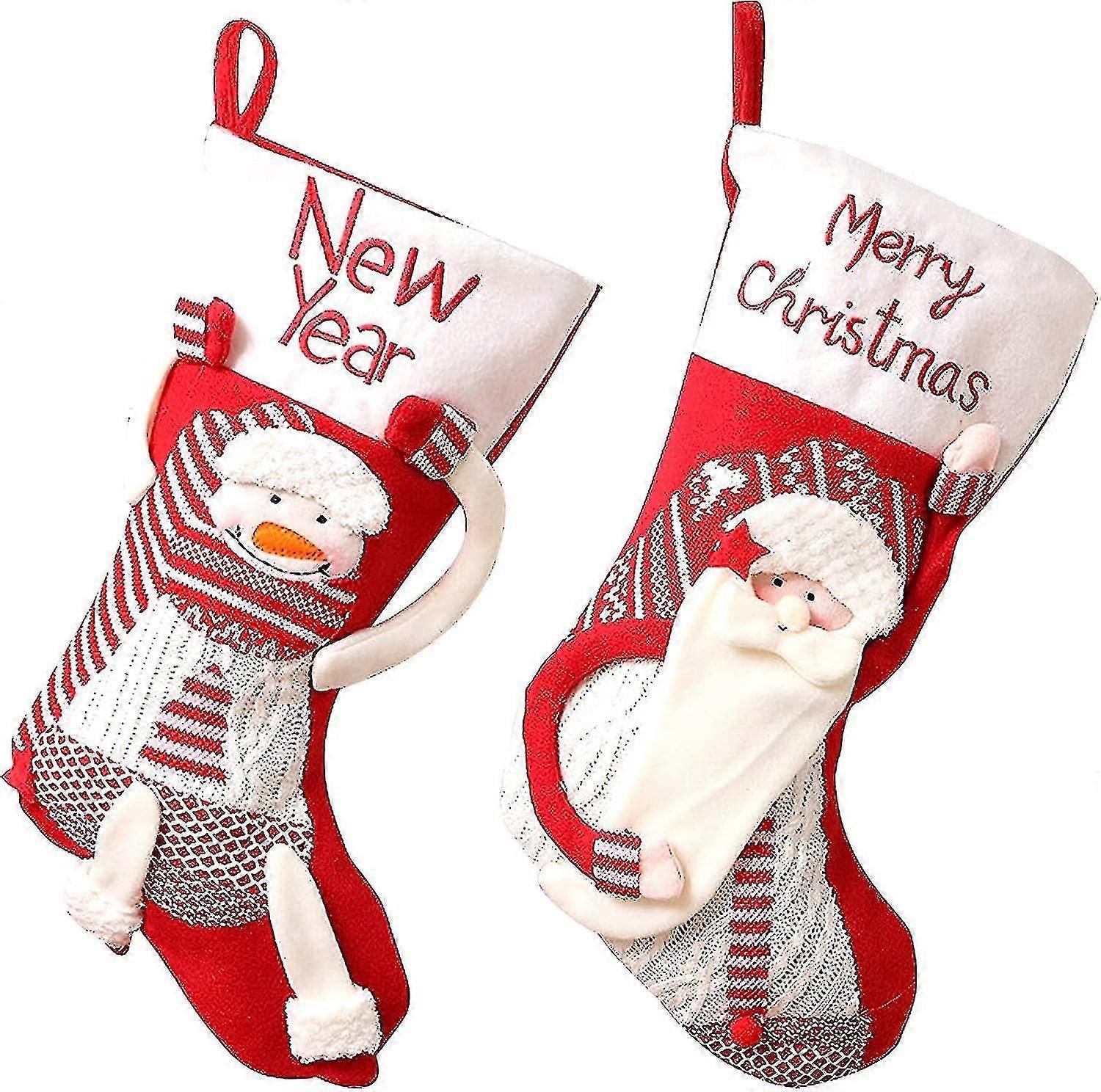 2 Pieces Christmas Stocking Socks Hanging Bags Christmas Gifts Candy Cookies Christmas Stocking Christmas Party Decoration