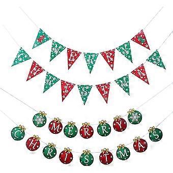 2 Pieces Merry Christmas Banner Pennant Christmas Ball Bunting Flag for Holiday Seasonal Party Tree Fireplace Porth Mantle Decoration