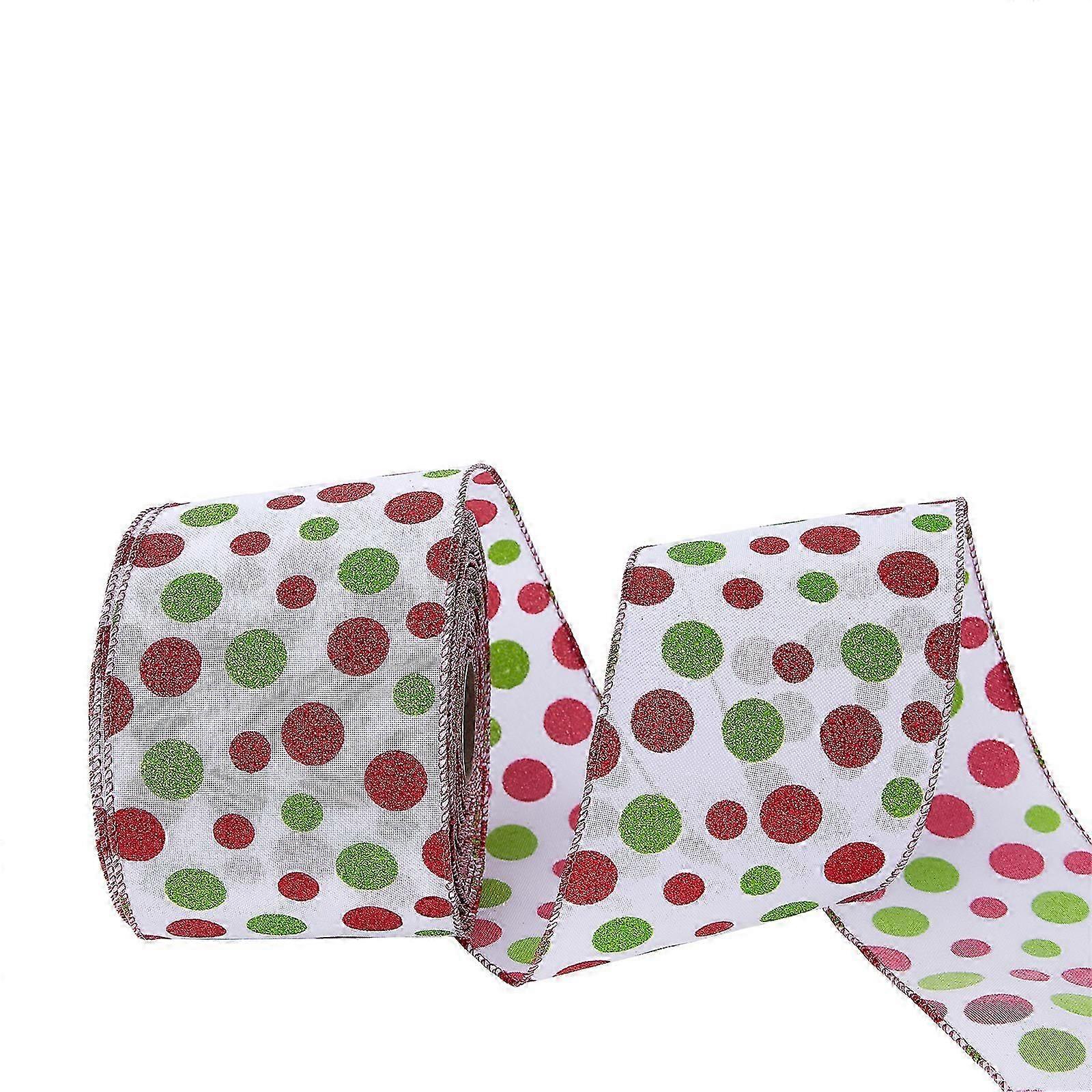 2 Pieces Red and Green Glitter Polka Dot Christmas Ribbon, 18.3m x 6.4cm Wide Christmas Gift Ribbon Wired Edge Ribbon for Christmas Tree DIY Gift Wrap
