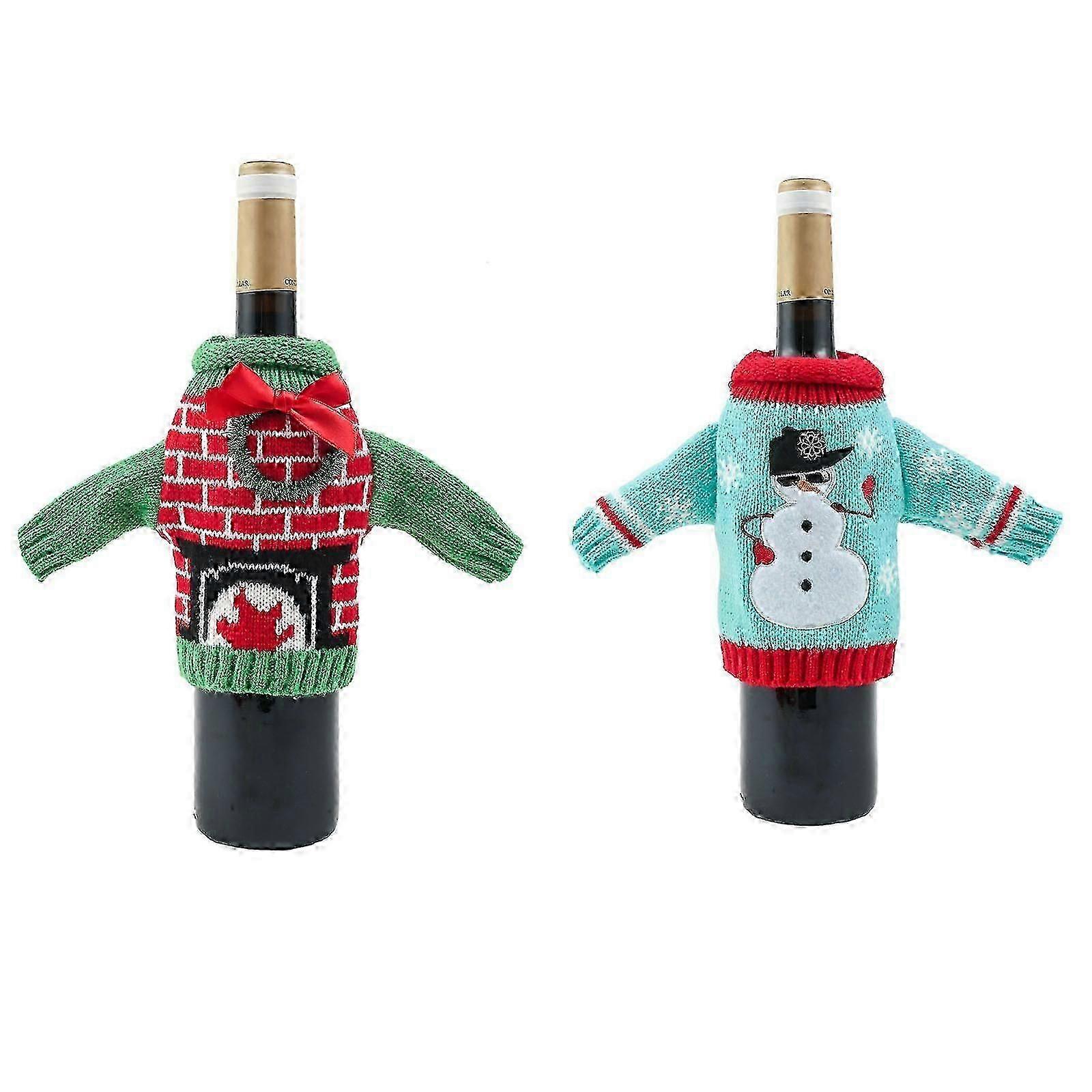 2 Pieces Sweater Christmas Bottle Decoration Knitted Bottle Pockets DecorationsGarland + Snowman