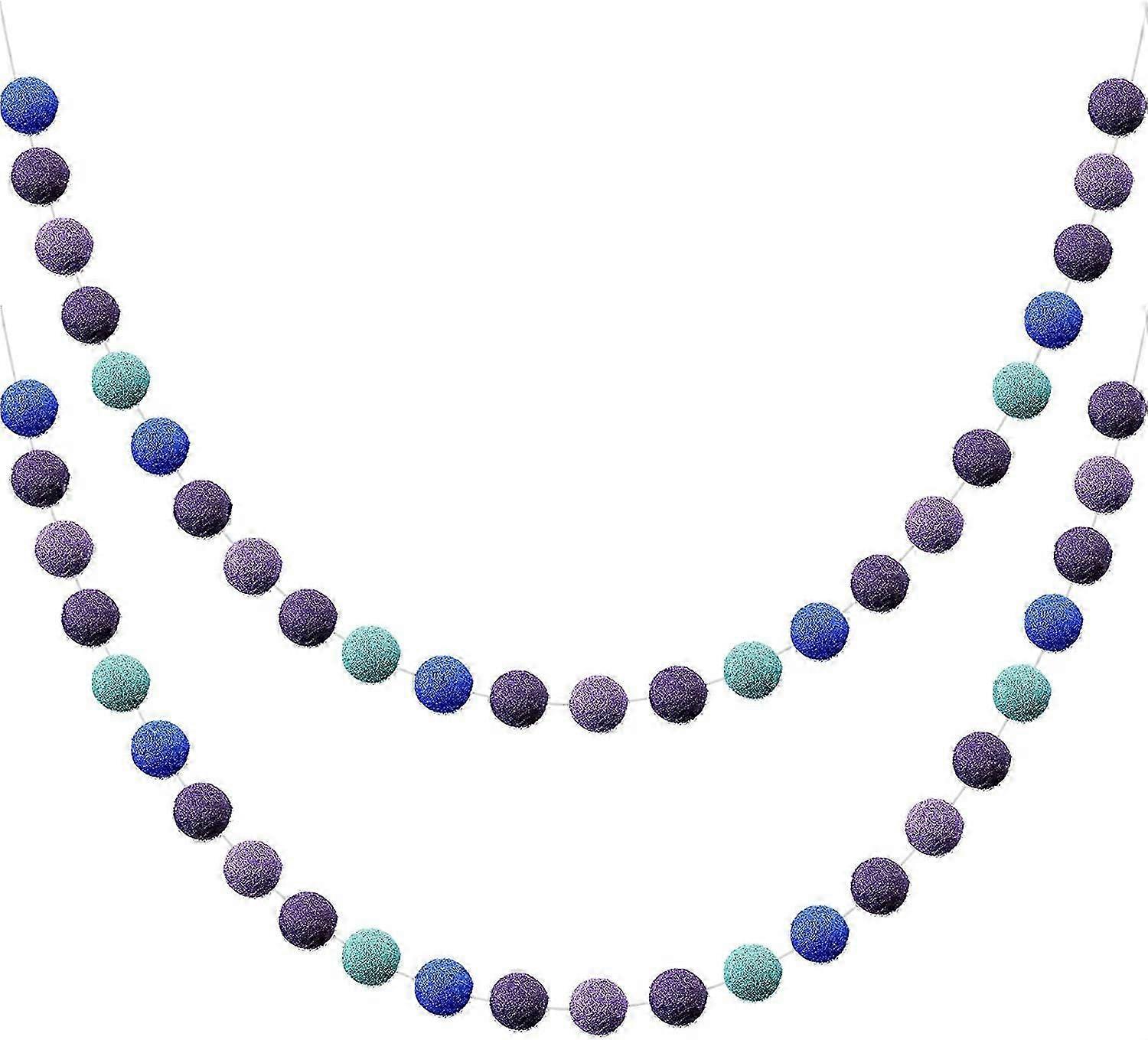 2 Pieces Wool Felt Ball Garland Colorful Pom Pom Garland Handmade 6.5 Feet Long 24 Balls Felt Ball Garlands for Wall Christmas Tree Decoration (Purple