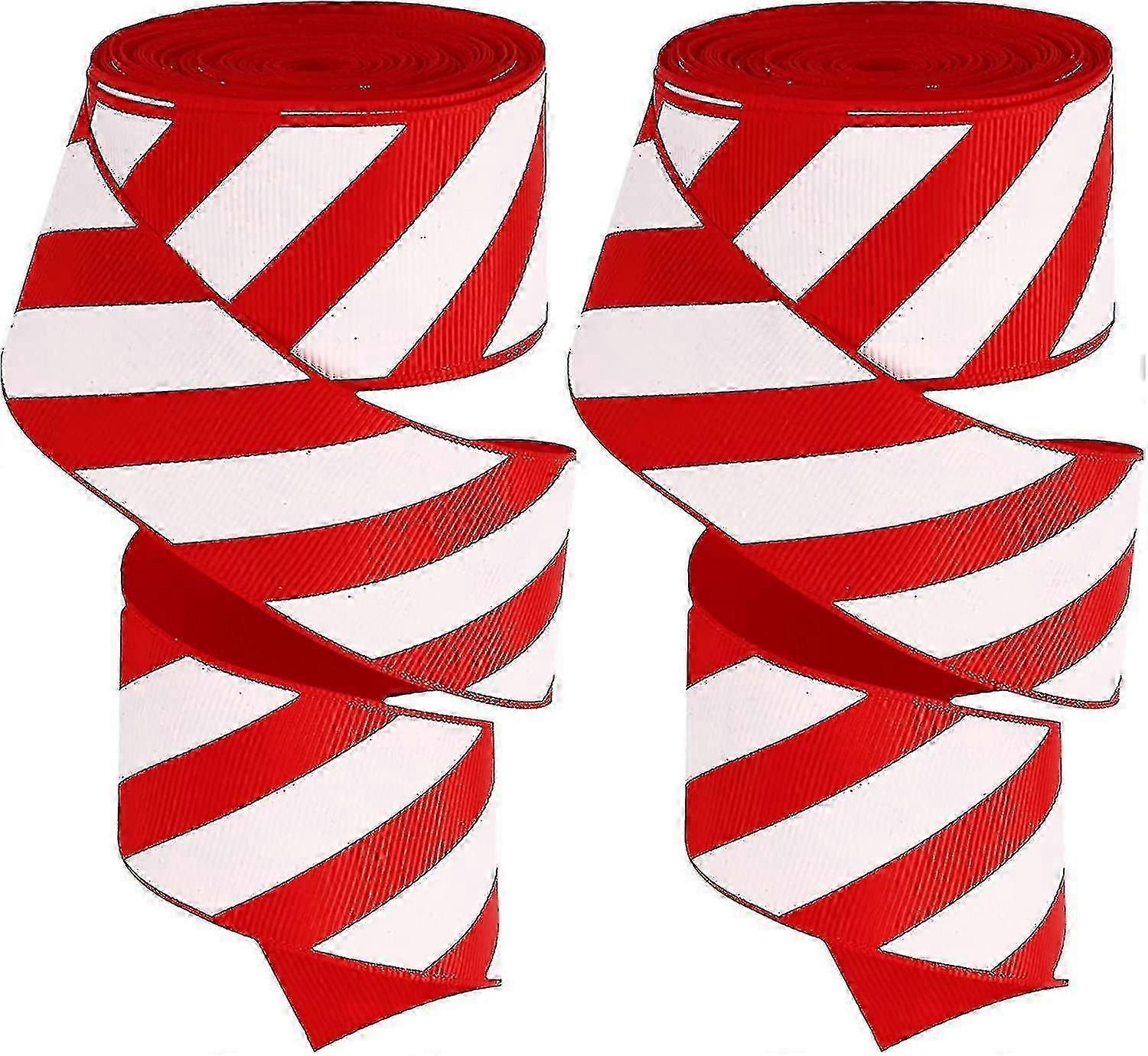 2 Rolls 10 Yards Red And White Striped Grosgrain Ribbon Christmas Ribbon Polyester Fabric Ribbons Xmas Wrapping