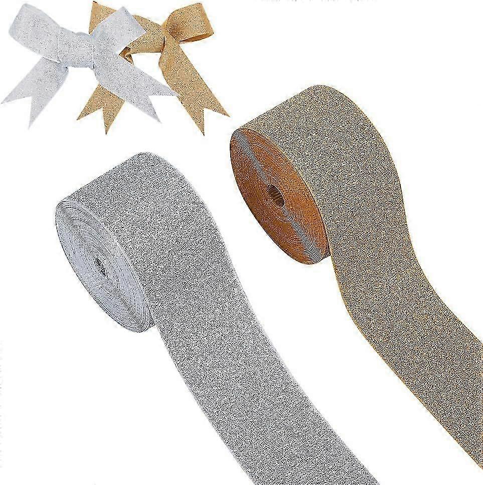 2 Rolls 2 Colors 13.1 Yards Christmas Glitter Wired Ribbon, Sparkle Ribbon Metallic Fabric Ribbon Gift Wrapping Ribbon for Xmas Wedding Birthday Part